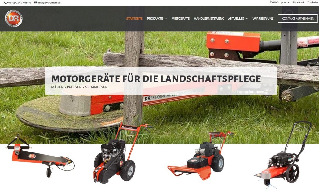 ZWO ist nicht nur ein Begriff was Baumaschinen und Baugeräte anbelangt, sondern ist im Bereich Landschaftspflege für ihre hochqualitativen DR POWER Motorgeräte ebenso eine feste Größe!